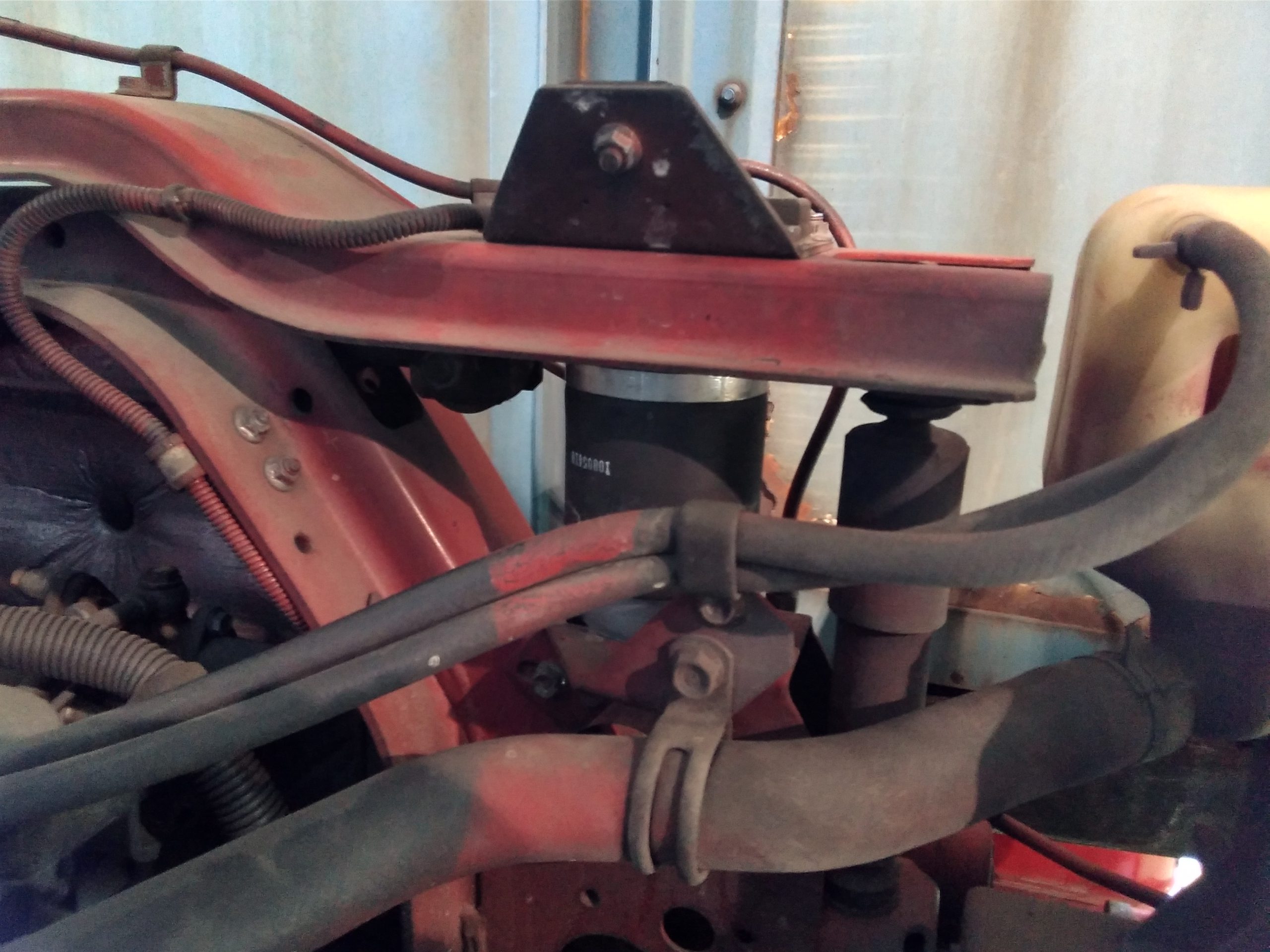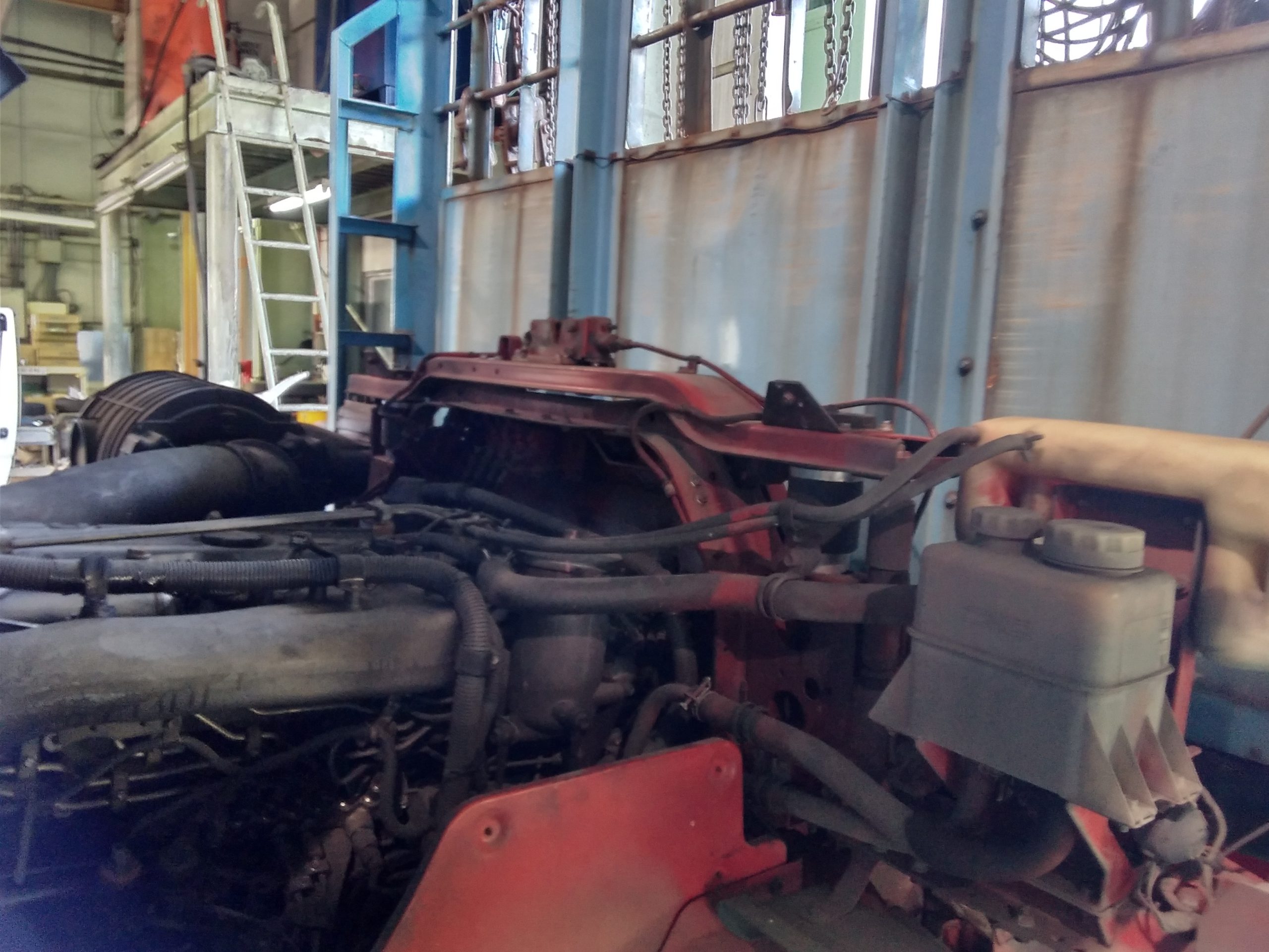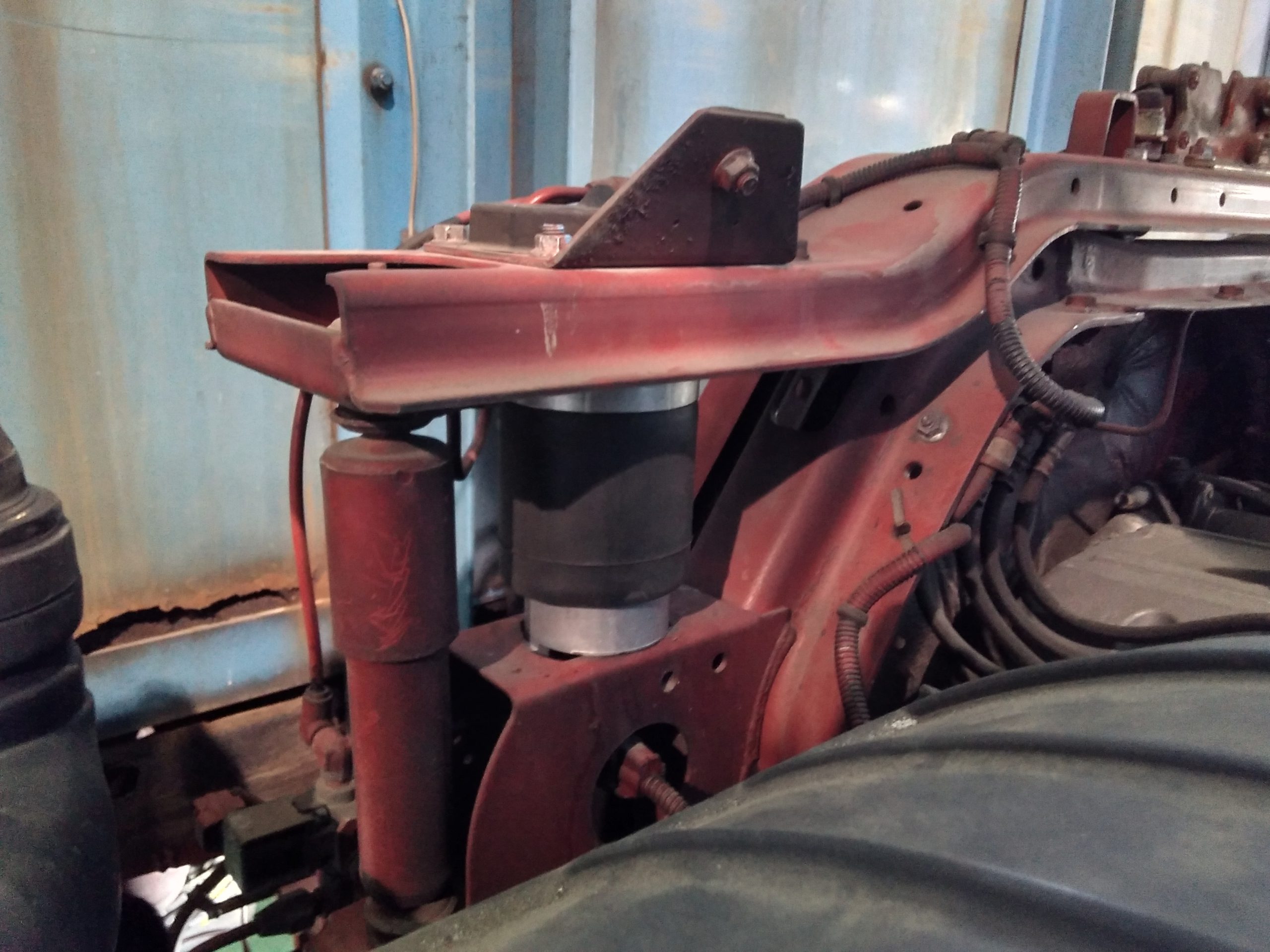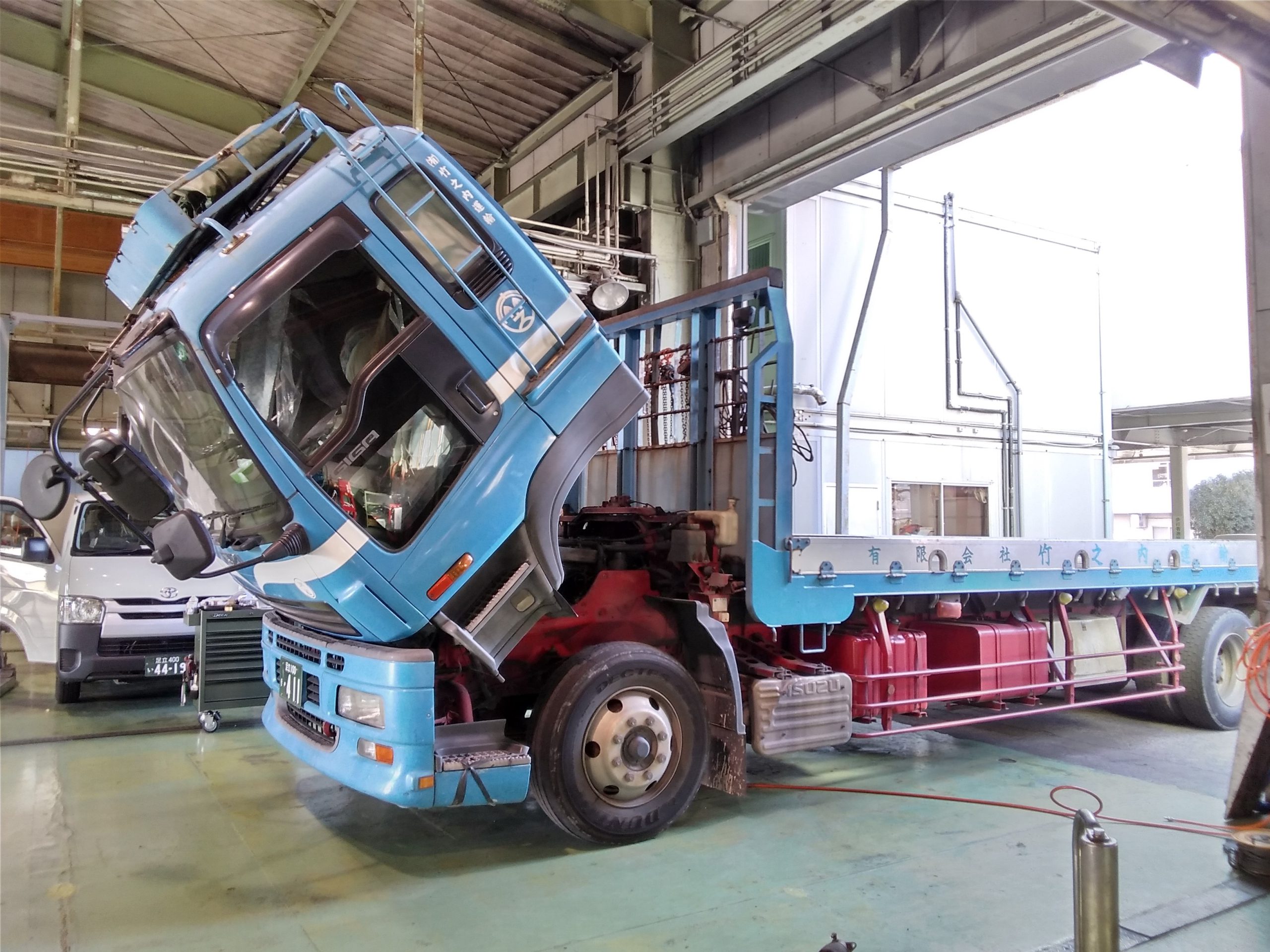 少し分かり難いですが大型トラックのキャビンを上げたところにキャブサスが付いています。