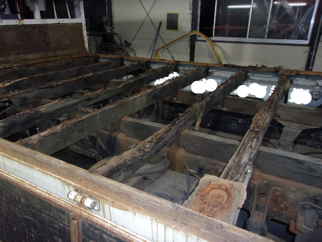 荷台の上に敷いてある、べニア板を剥がしみたらこんなに腐っていました。