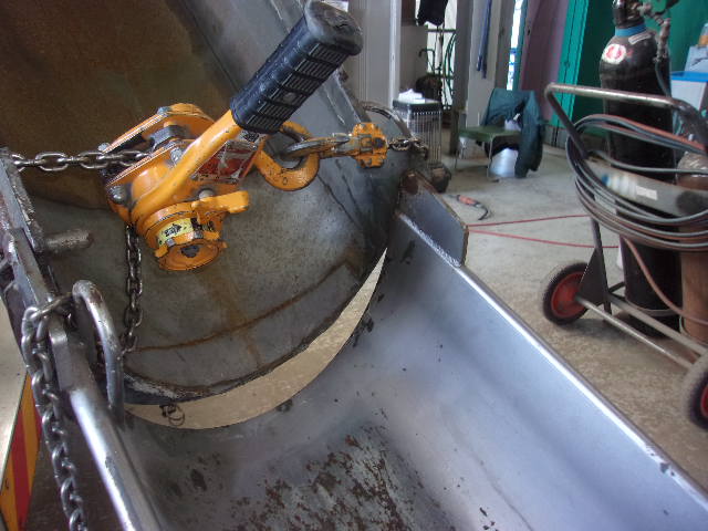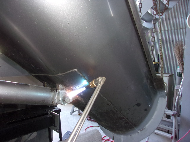 排水タンクの取付部分はプレートを溶接していきます。