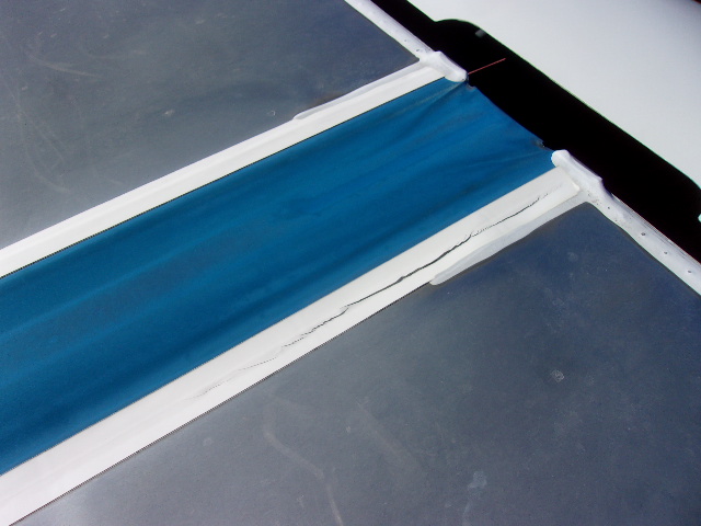 雨漏れの原因はセンターシートの劣化によるひび割れが原因でした。