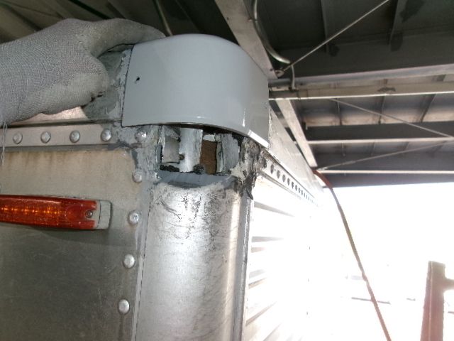 入庫写真 コナーポストの所にアルミテープで補修してありました。テープを剝がしてみた所、、、