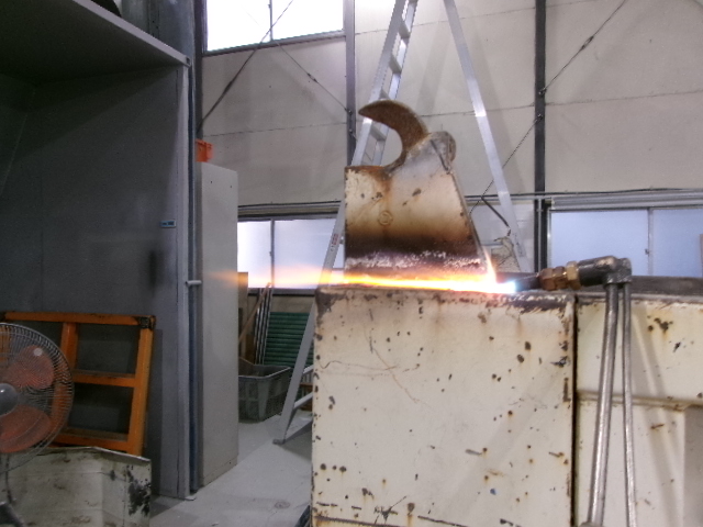 破損している受け金具をガスで切断して、切断面をサンダーで仕上げて新しい止め金具を取り付けます。