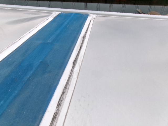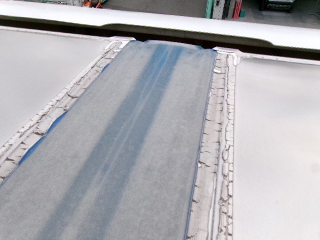 車輛の上に上がって点検してみた所、センターシート・シーリング部分がかなり劣化していて、ここから雨漏りしている事が分かりました。