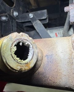 外してみるとたくさんアドブルーのカスが溜まってました。