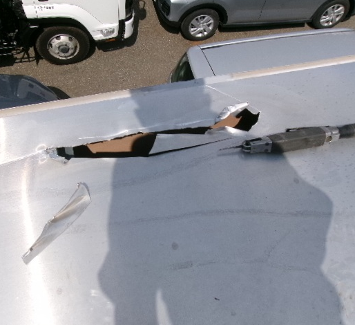 ウイング車の屋根の修理開始です。