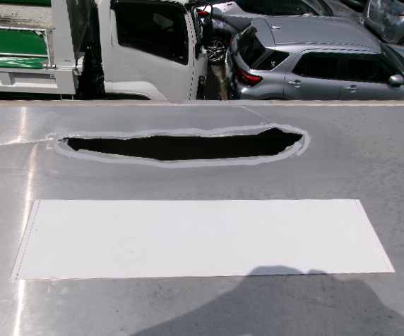 日野 レンジャー ルーフ破れ修理