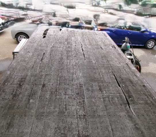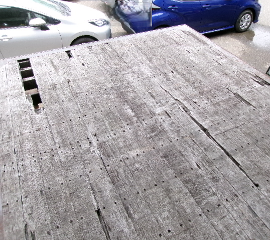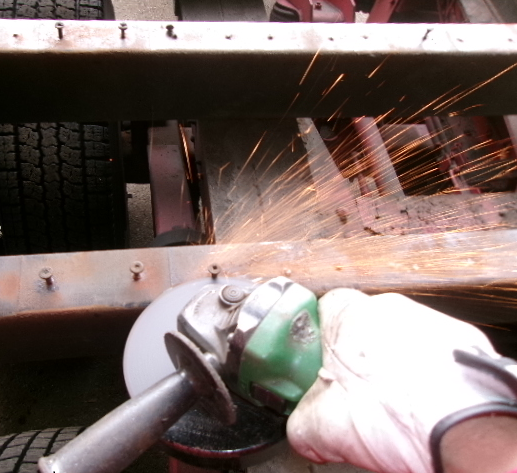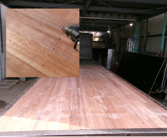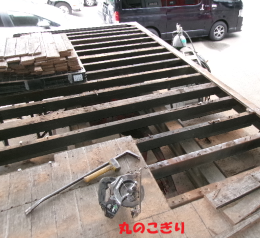 ①10トントラックの平ボディの床板後部のみの部分修理をしていきます。