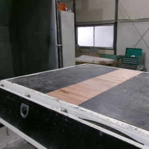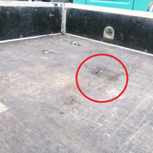 ①トラックの床板の一部分にだけ穴が空いてしまっています。