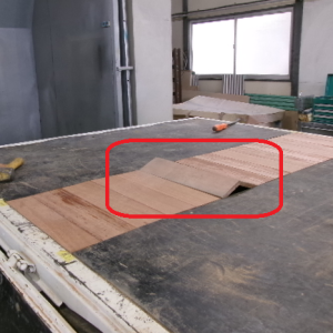 ③寸法に合わせてカットした板を合掌させて叩き込み隙間なくぴったりはめます👤