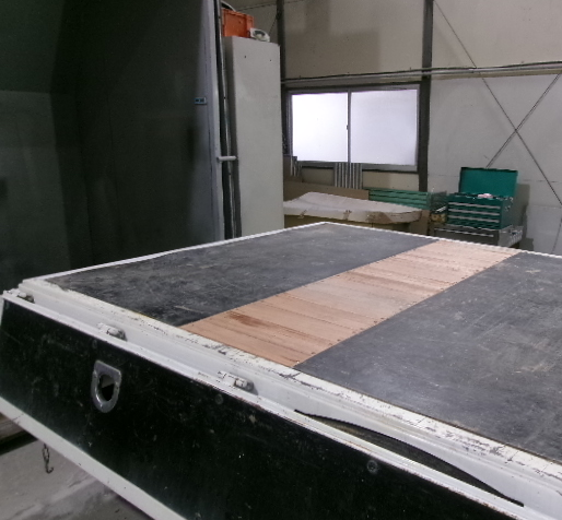 5メートル程ある板をカットして、荷台にはめ込んでいきます。