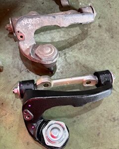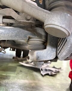 こちらを交換する際ブレーキローター、ハブベアリング、ステアリングナックル等を分解するのでだいぶ時間はかかります。