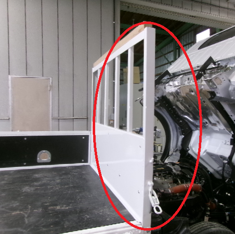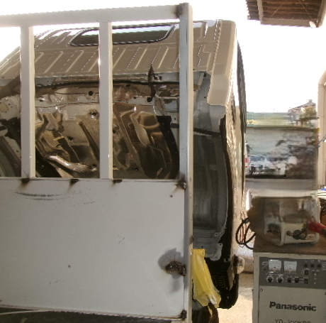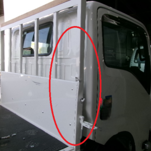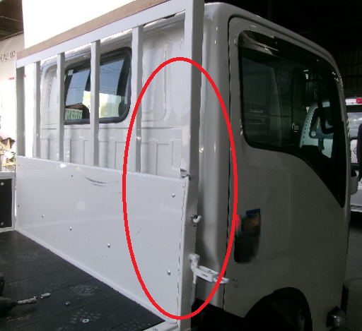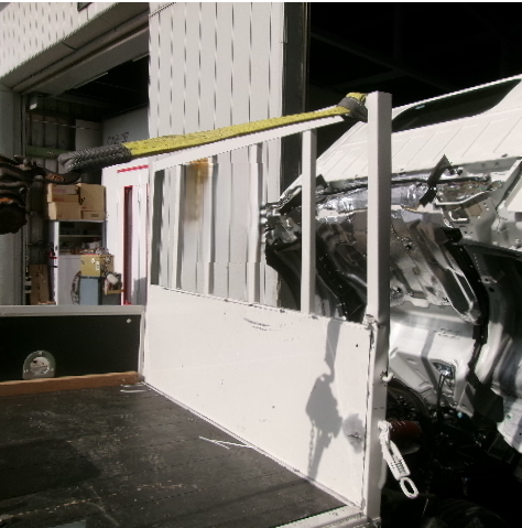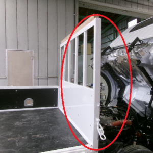 ①入庫したトラックを確認すると、鳥居が前に曲がってしまっています💦