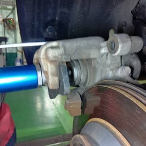 このタイプのキャリパーは押し込みながら回してピストンを戻すので専用工具があるとやりやすいです。