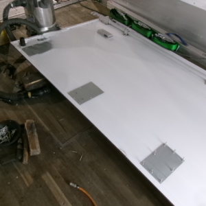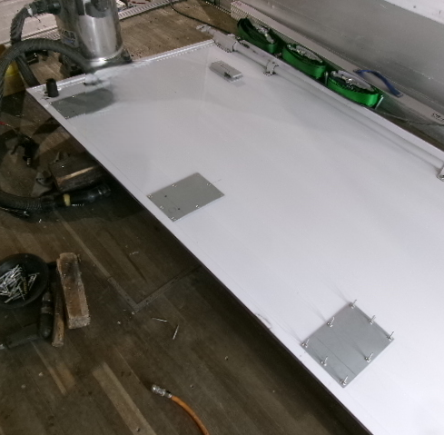 あらかじめ新しい板を注文していたので、板を扉にリベットで頑丈に固定